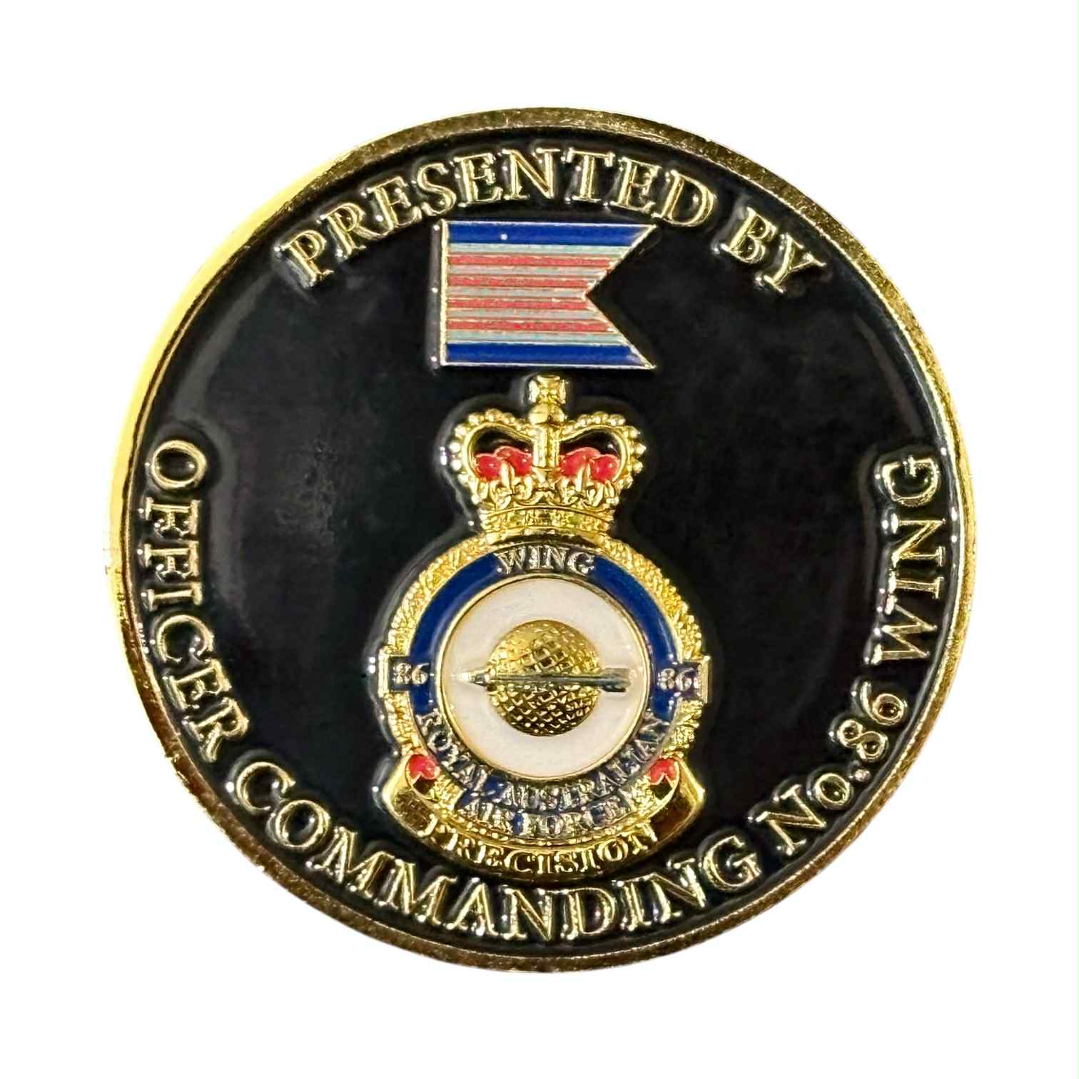 Presented by Officer Commanding No.86 Wing challenge coin as pictured.